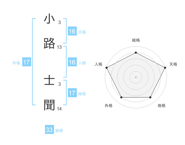 小路 士聞さんの外格は17画の4点!