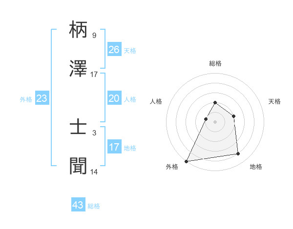 柄澤 士聞さんの外格は23画の5点!