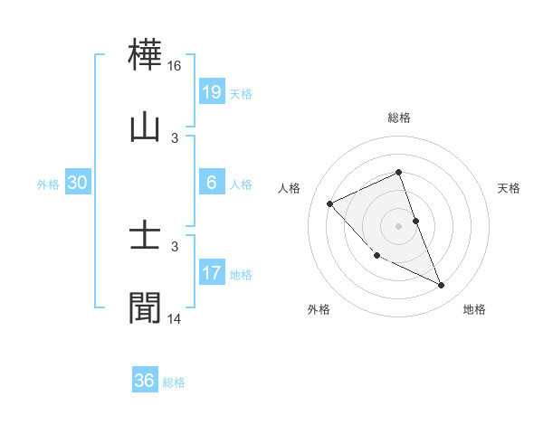 樺山 士聞さんを姓名の画数から五運を鑑定