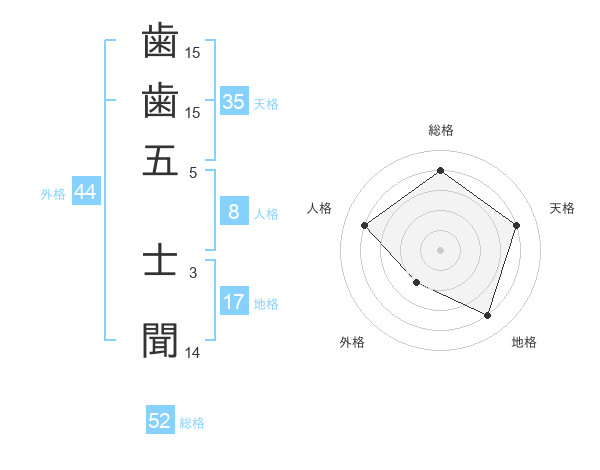歯歯五 士聞さんの総格は52画の4点!
