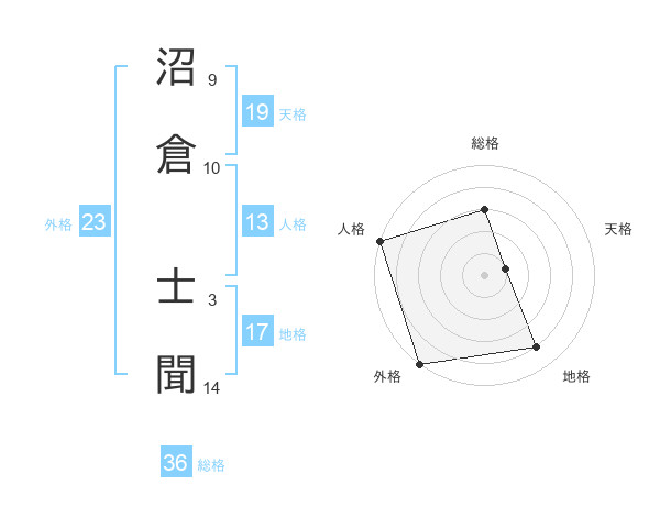 沼倉 士聞さんを姓名の画数から五運を鑑定