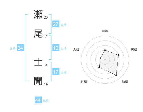 瀬尾 士聞さんを姓名の画数から五運を鑑定