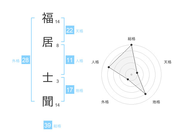 福居 士聞さんを姓名の画数から五運を鑑定
