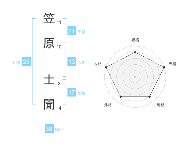 笠原 士聞さんを姓名の画数から五運を鑑定