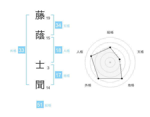 藤蔭 士聞さんの総格は51画の3点!