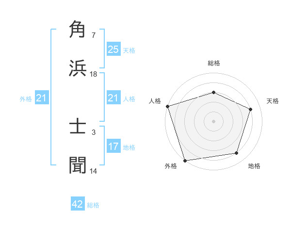 角浜 士聞さんの外格は21画の5点!