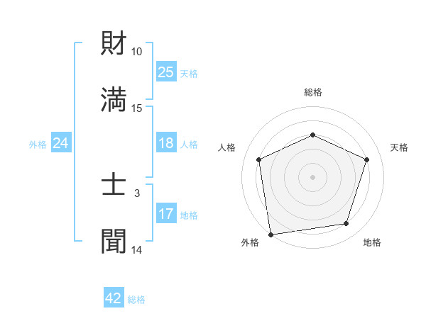 財満 士聞さんを姓名の画数から五運を鑑定