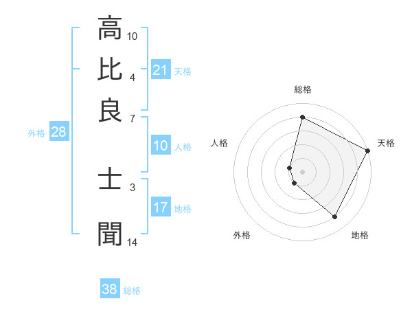 高比良 士聞さんを姓名の画数から五運を鑑定