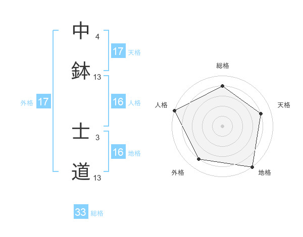 中鉢 士道さんの天格は17画の4点!