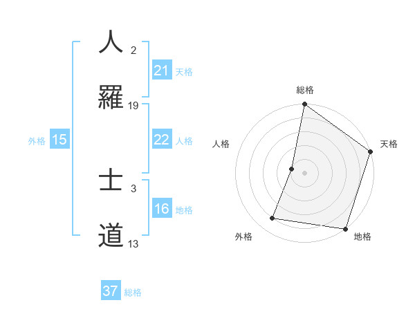 人羅 士道さんの総格は37画の5点!