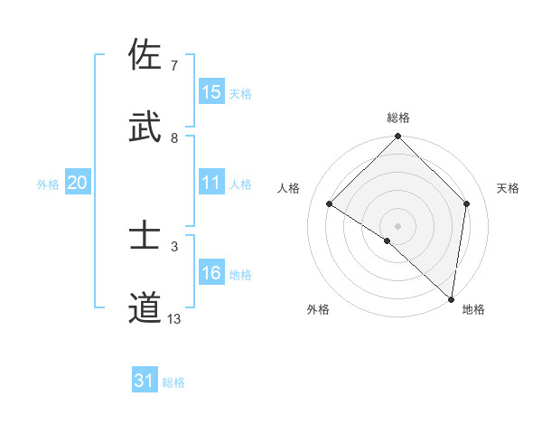 佐武 士道さんの総格は31画の5点!