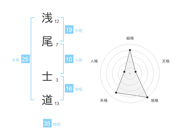浅尾 士道さんの総格は35画の4点!