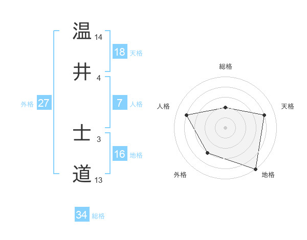 温井 士道さんの天格は18画の4点!
