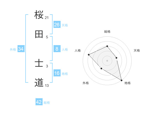 桜田 士道さんの天格は26画の2点!