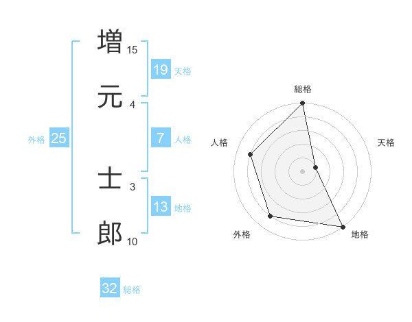 増元 士郎さんの天格は19画の1点!