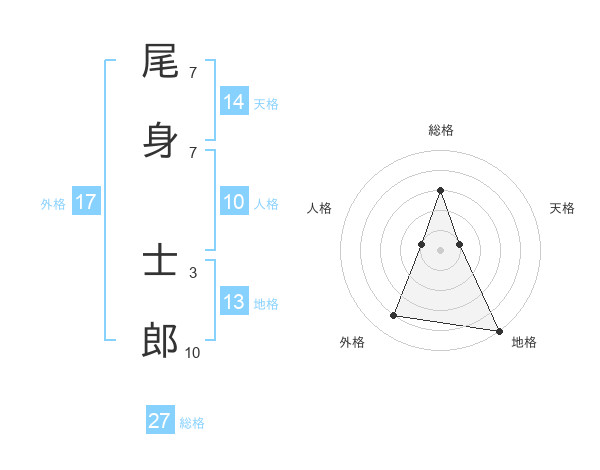 尾身 士郎さんの総格は27画の3点!