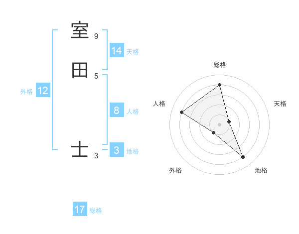 室田 士さんの総格は17画の4点!