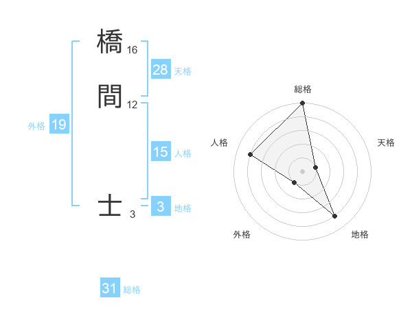橋間 士さんの総格は31画の5点!