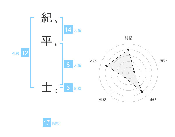 紀平 士さんの地格は3画の4点!