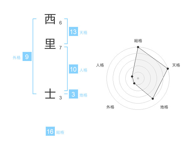 西里 士さんの天格は13画の5点!