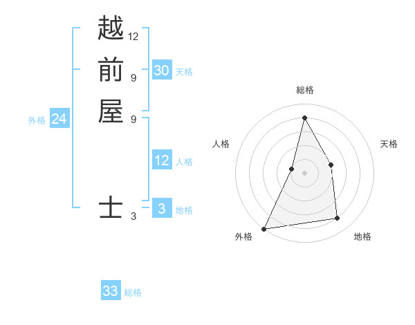 越前屋 士さんの総格は33画の4点!