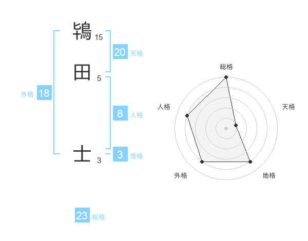 鴇田 士さんの天格は20画の1点!