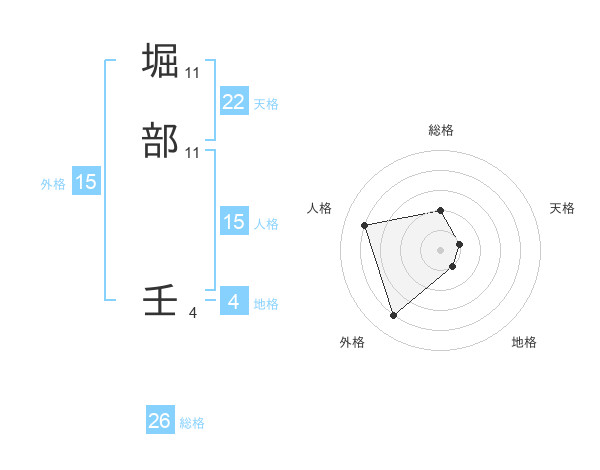 堀部 壬さんの総格は26画の2点!