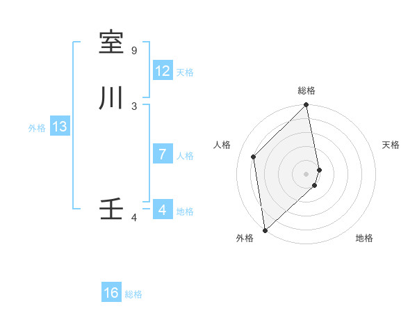 室川 壬さんの総格は16画の5点!
