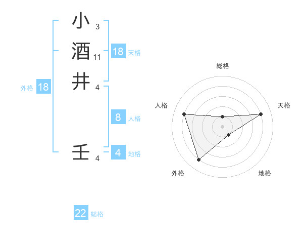 小酒井 壬さんを姓名の画数から五運を鑑定