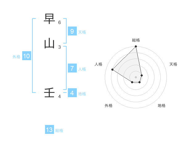 早山 壬さんの総格は13画の5点!