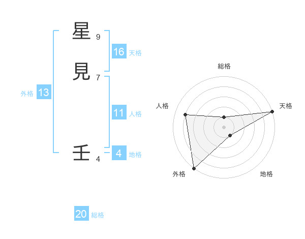 星見 壬さんの総格は20画の1点!
