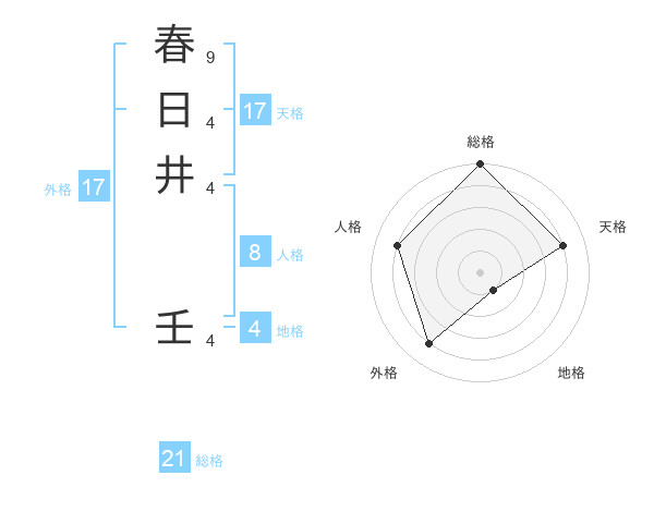 春日井 壬さんの天格は17画の4点!