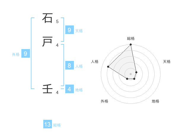 石戸 壬さんの総格は13画の5点!
