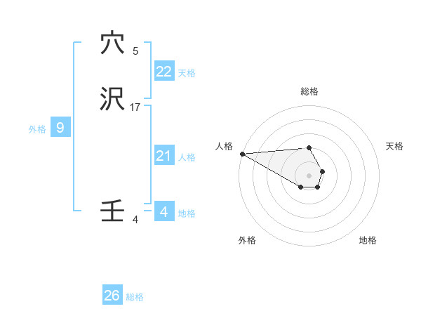 穴沢 壬さんを姓名の画数から五運を鑑定