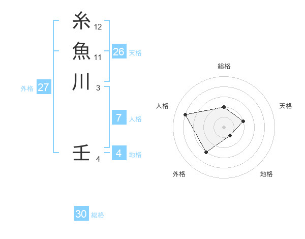糸魚川 壬さんを姓名の画数から五運を鑑定