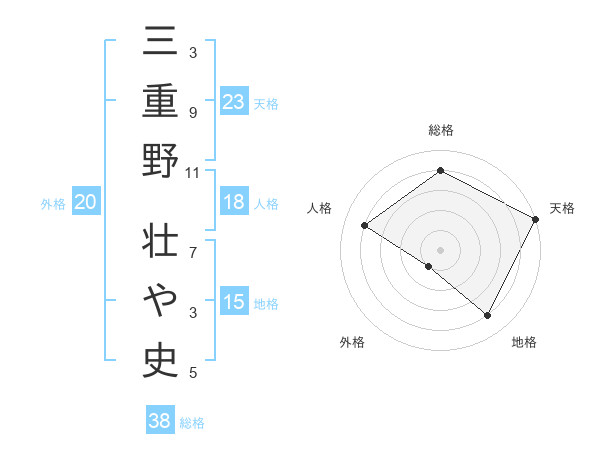 三重野 壮や史さんを姓名の画数から五運を鑑定