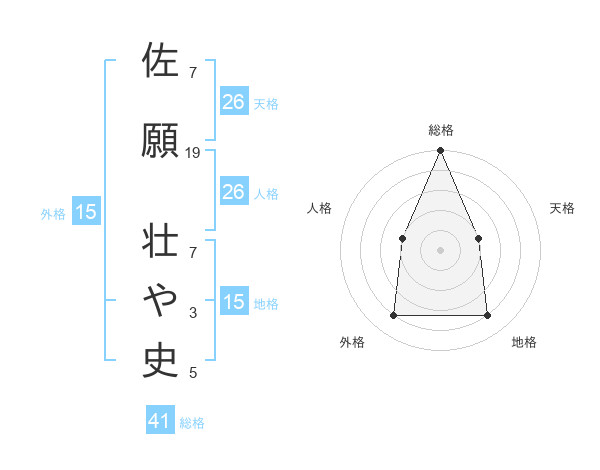 佐願 壮や史さんを姓名の画数から五運を鑑定