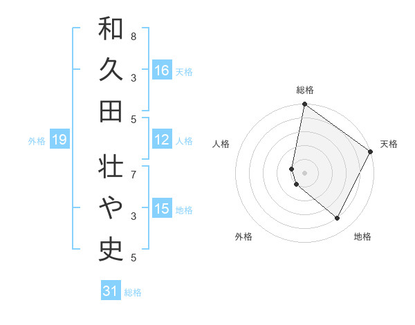 和久田 壮や史さんの総格は31画の5点!