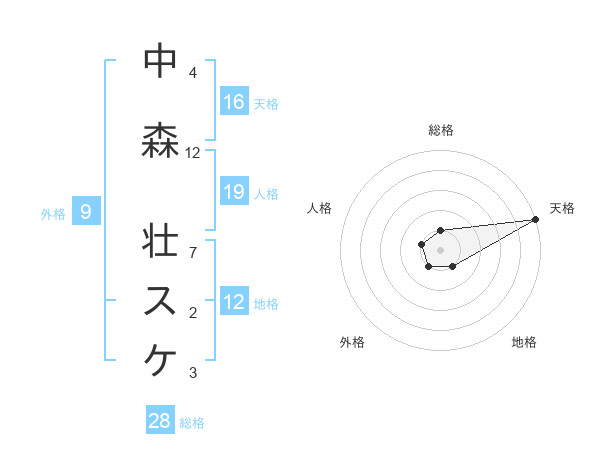 中森 壮スケさんを姓名の画数から五運を鑑定