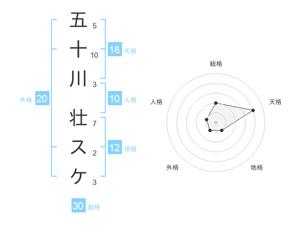 五十川 壮スケさんの総格は30画の2点!
