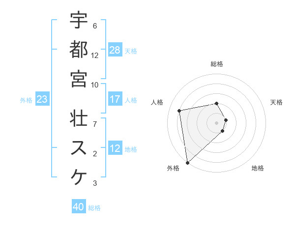 宇都宮 壮スケさんを姓名の画数から五運を鑑定