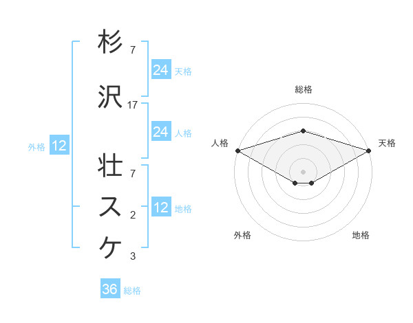 杉沢 壮スケさんを姓名の画数から五運を鑑定