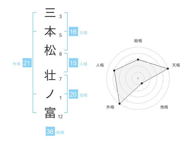 三本松 壮ノ富さんを姓名の画数から五運を鑑定