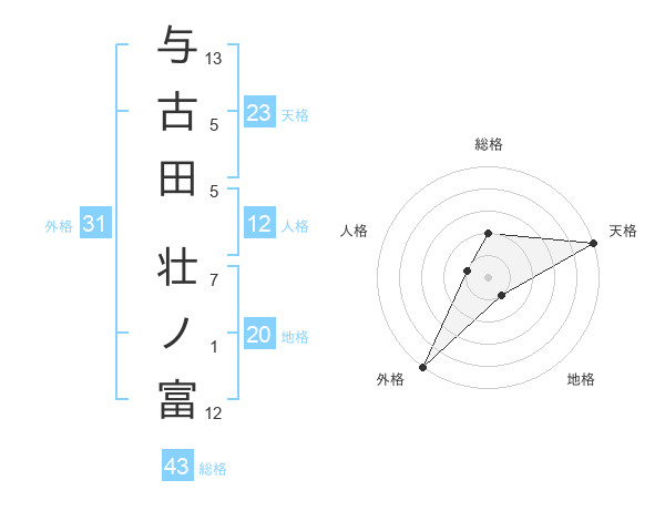 与古田 壮ノ富さんの天格は23画の5点!
