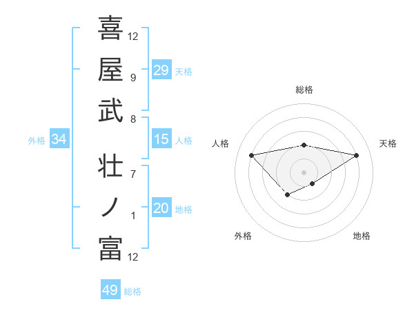 喜屋武 壮ノ富さんの総格は49画の2点!
