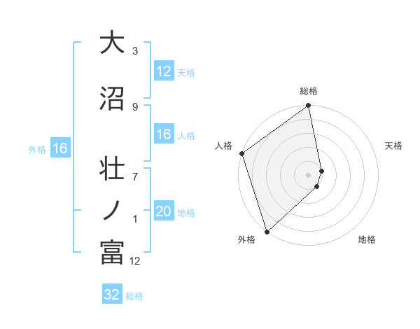 大沼 壮ノ富さんを姓名の画数から五運を鑑定