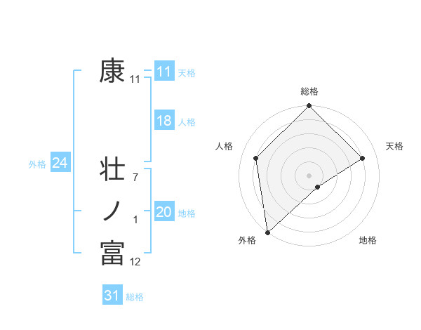 康 壮ノ富さんの総格は31画の5点!