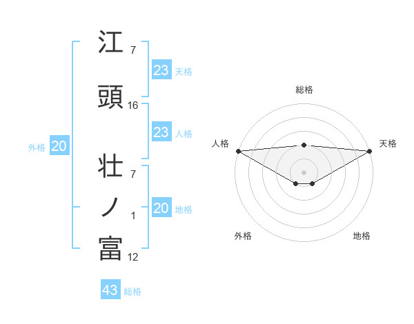 江頭 壮ノ富さんを姓名の画数から五運を鑑定
