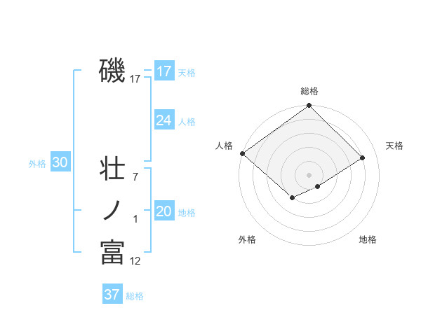 磯 壮ノ富さんを姓名の画数から五運を鑑定