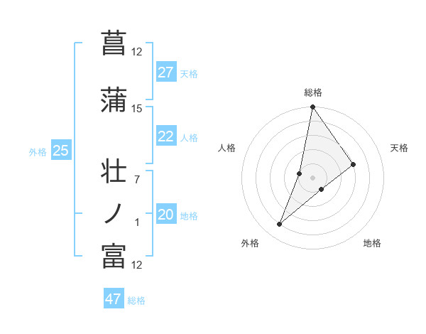菖蒲 壮ノ富さんの総格は47画の5点!